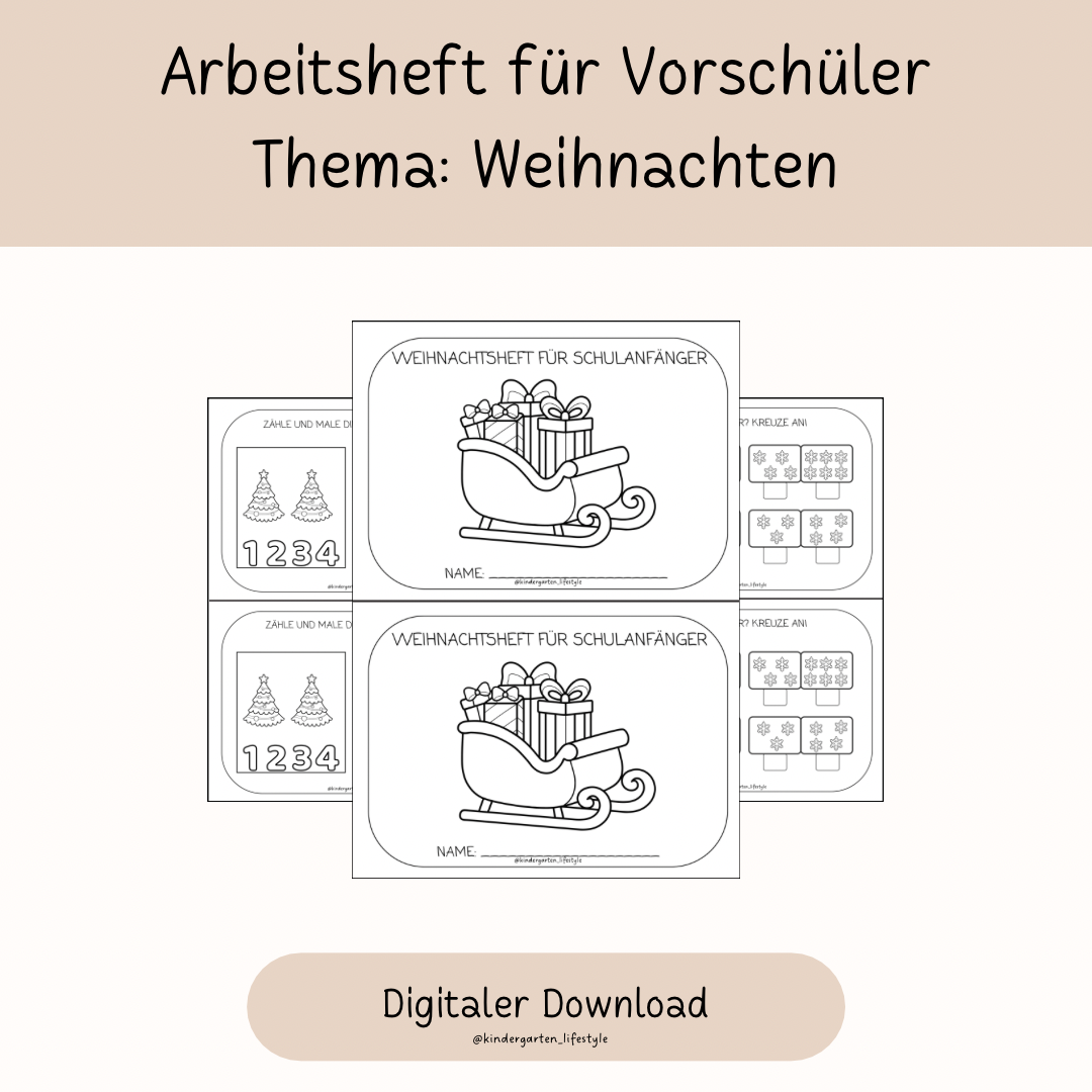 Mit diesem Weihnachtsheft können Schulanfänger spielerisch Zählen, Farben erkennen und Schreiben üben, um ihre Wahrnehmungs- und Feinmotorik zu fördern.