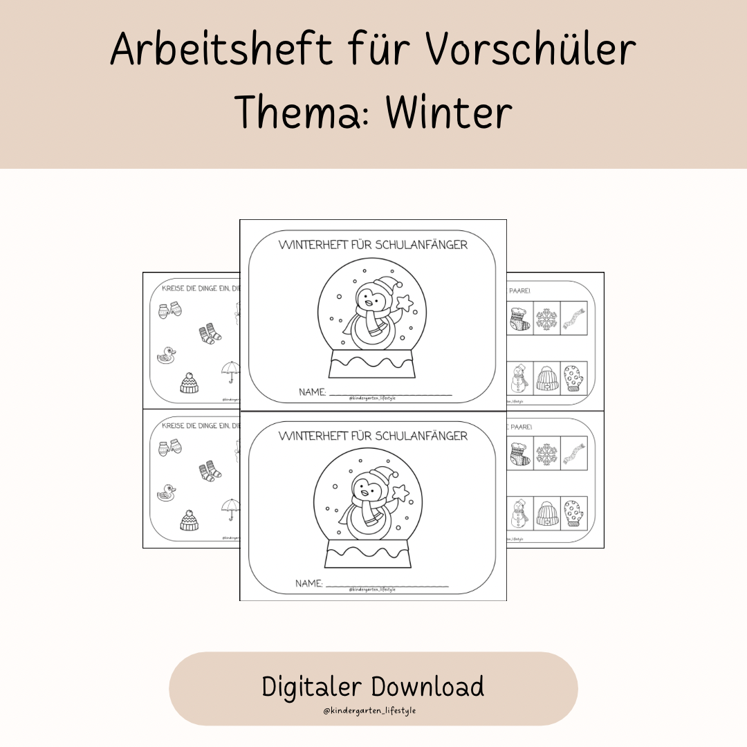 Dieses Winterheft hilft Kinder, spielerisch die Jahreszeit Winter und grundlegende Zahlen- und Buchstabenkenntnisse zu lernen.