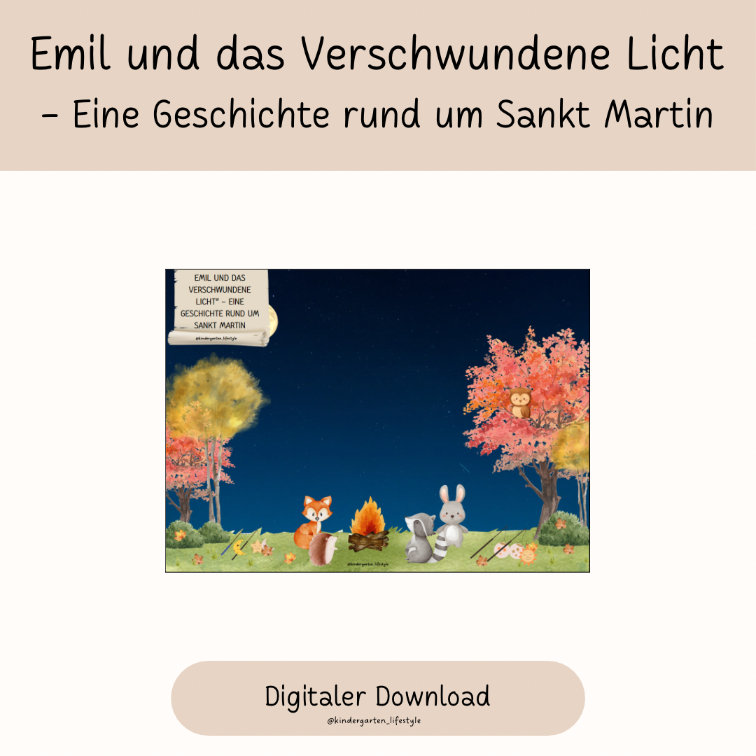 - Kamishibai-Geschichte: „Emil und das verschwundene Licht“ ist eine einfühlsame Erzählung rund um Sankt Martin. Sie handelt von einem kleinen Fuchs, der das Licht wiederfindet und dabei die Bedeutung des Teilens entdeckt.