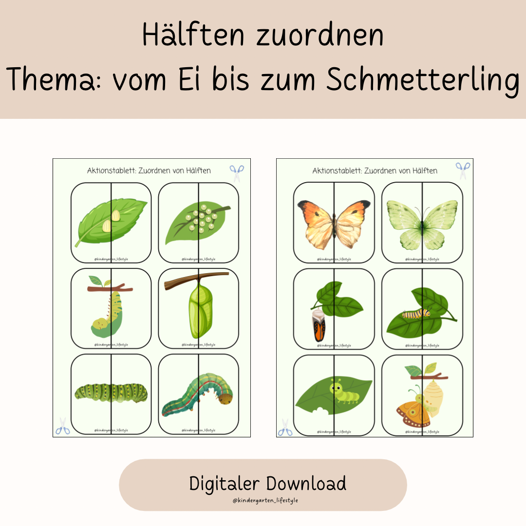 Hälften zuordnen Thema: vom Ei bis zum Schmetterling