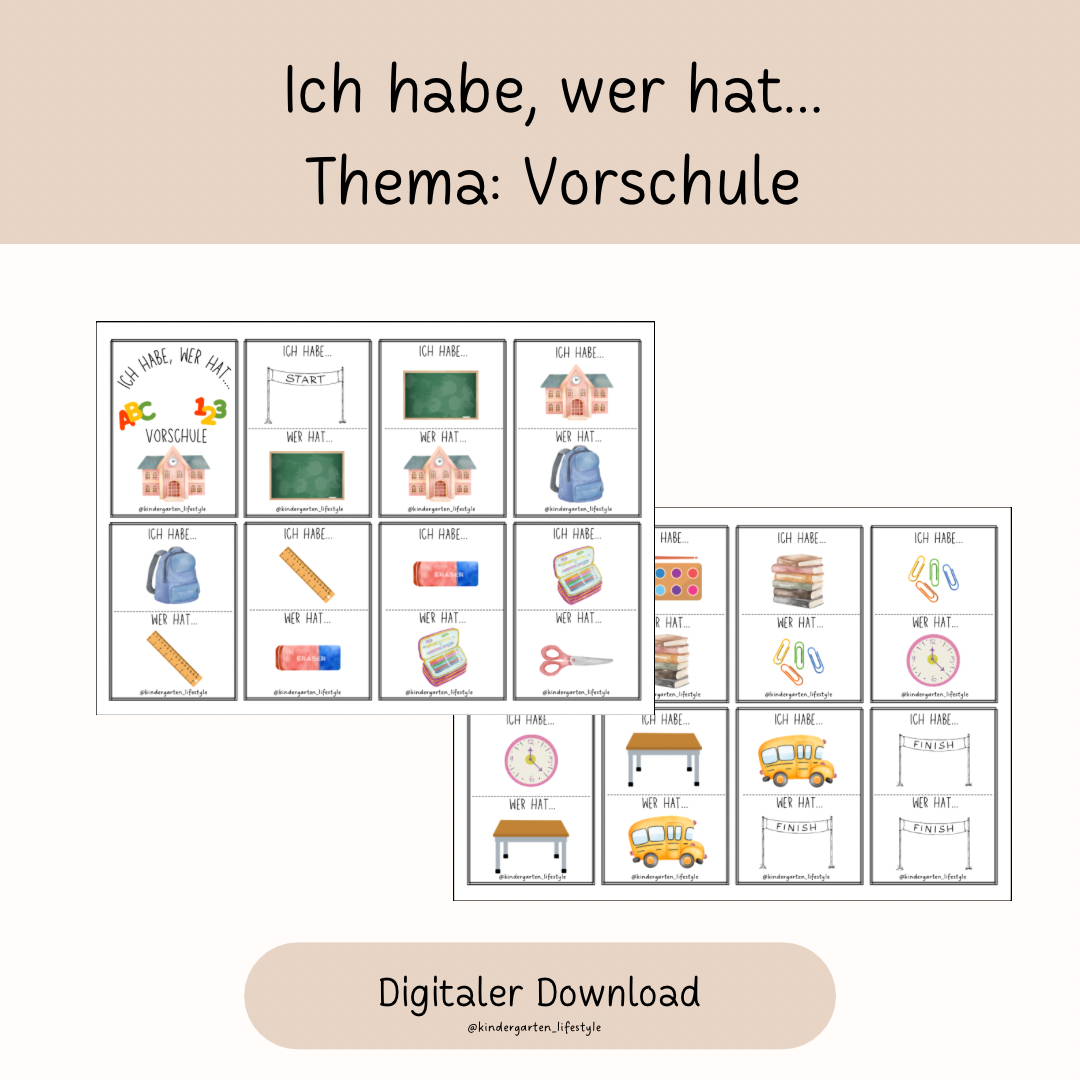 Dieses Material fördert spielerisch das Lernen in der Vorschule. Die Kinder üben wichtige Fähigkeiten wie Sprachverständnis, Zuhören und das Erkennen von Gegenständen. Durch das Spiel „Ich habe, wer hat“ wird das Lernen zu einem interaktiven Erlebnis.