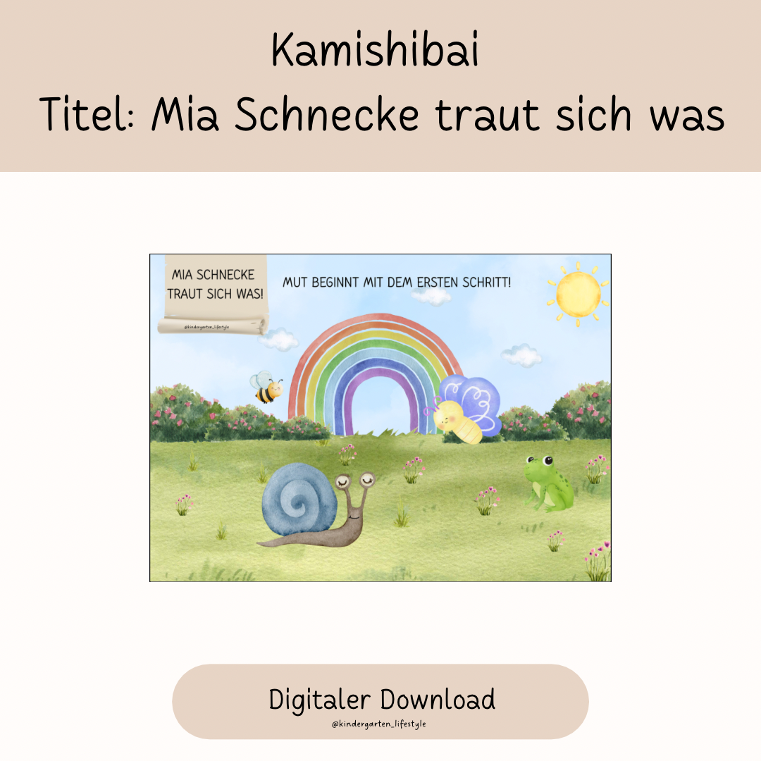 Dieses Kamishibai erzählt die herzerwärmende Geschichte von Mia, der kleinen Schnecke, die lernt, ihre Ängste zu überwinden und mutig zu sein. Die Kinder begleiten Mia auf ihrem Weg, kleine Schritte zu wagen und neue Erfahrungen zu sammeln.