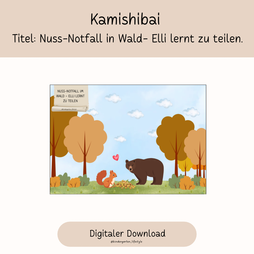 Kamishibai Titel: Nuss-Notfall im Wald- Elli lernt zu teilen!