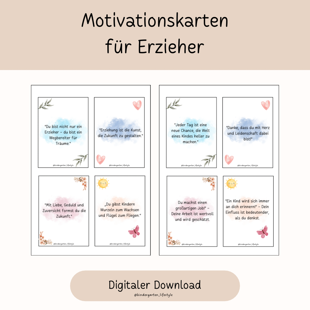 Diese Motivationskarten sind eine wunderbare Unterstützung für Erzieher*innen. Sie helfen dabei, die wertvolle Arbeit im Alltag zu würdigen und zu inspirieren.