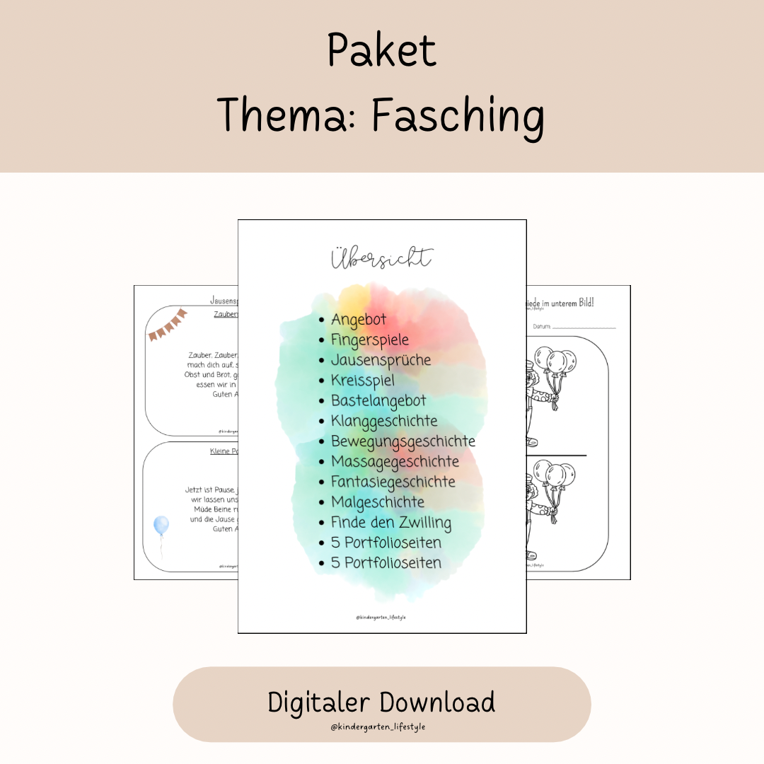 Dieses Material bietet eine bunte Sammlung an Aktivitäten rund um das Thema Fasching. Es fördert die Kreativität, Bewegung und das soziale Miteinander der Kinder. Die verschiedenen Angebote sind einfach umzusetzen und machen viel Spaß!