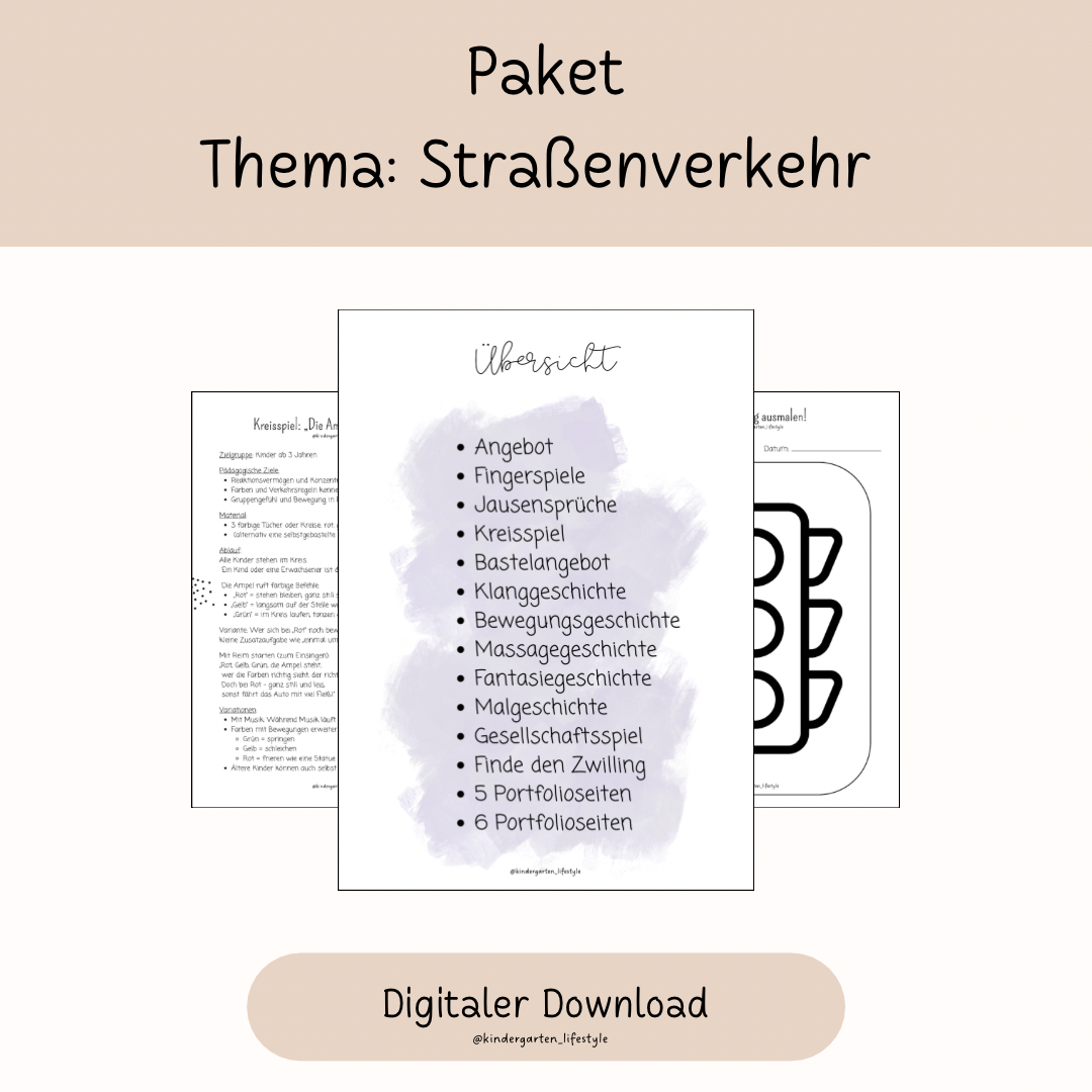 Dieses Material bietet eine Vielzahl an Aktivitäten, die Kinder auf spielerische Weise auf den Straßenverkehr vorbereiten. Es ist ideal für den Einsatz im Kindergarten und fördert wichtige Kompetenzen.