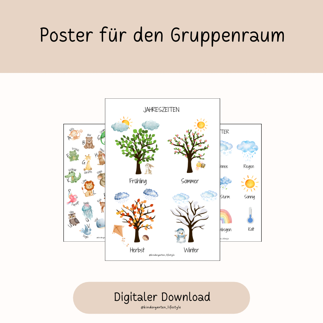 Die verschiedene Poster fördern das positive Selbstbild sowie das Verständnis für Körperteile, Wochentage, Monate, Verkehrsmittel, Berufe, Formen, Präpositionen und Emotionen.
