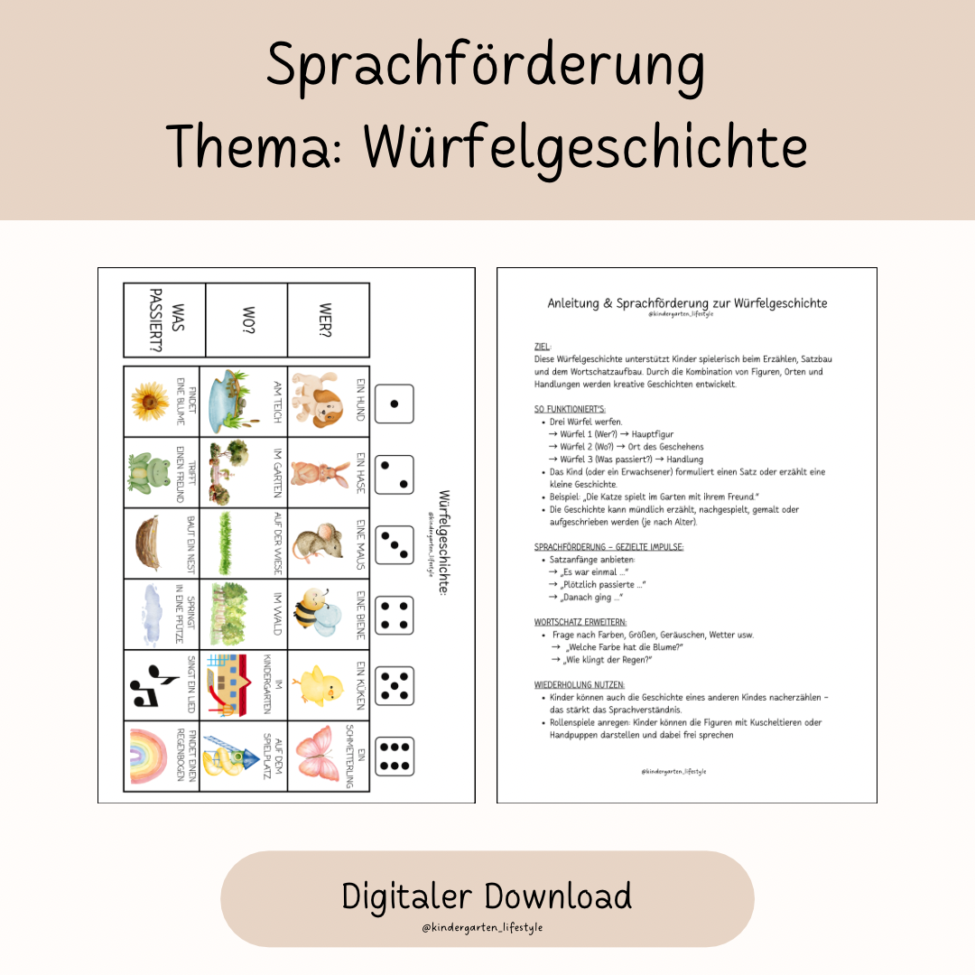 Die Würfelgeschichte unterstützt Kinder dabei, ihre Fantasie zu nutzen und ihre sprachlichen Fähigkeiten zu verbessern. Hier sind die Hauptziele:
