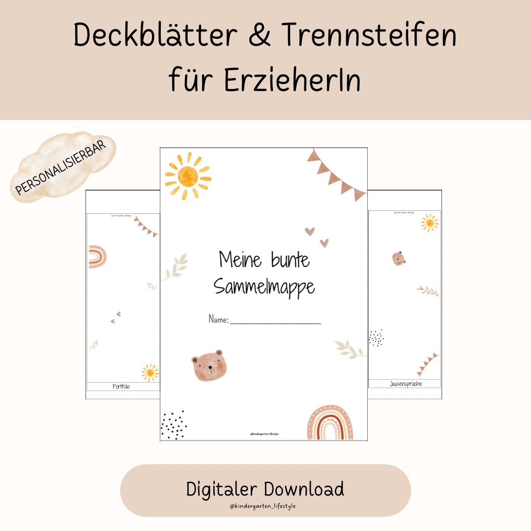 Deckblatt & Trennstreifen Für ErzieherIn (personalisierbar)