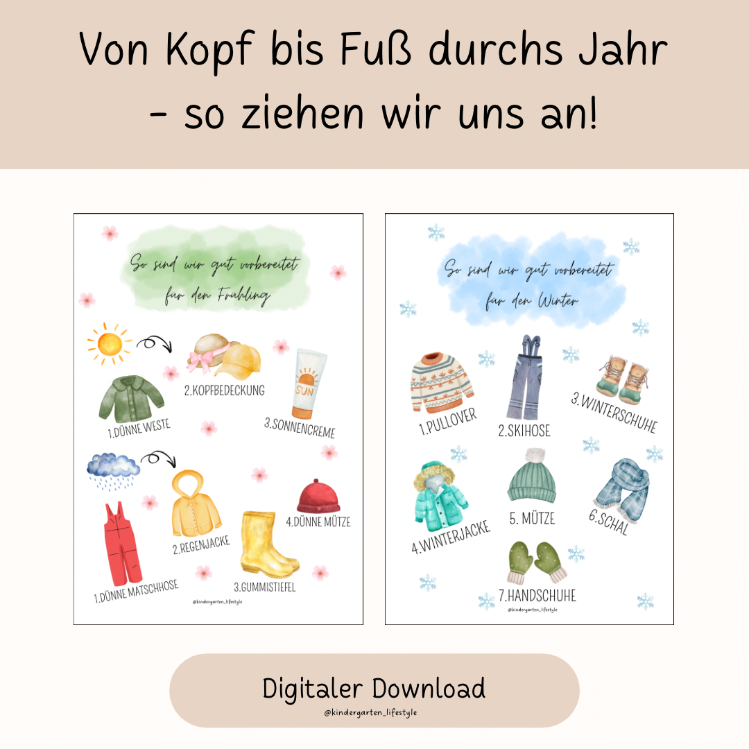 Dieses Material unterstützt Kinder dabei, zu lernen, welche Kleidung sie bei verschiedenen Wetterlagen tragen sollten. Es fördert das Bewusstsein für die verschiedenen Jahreszeiten und die dazugehörige Kleidung. Mit anschaulichen Bildern und klaren Anleitungen wird das Lernen zum Kinderspiel!