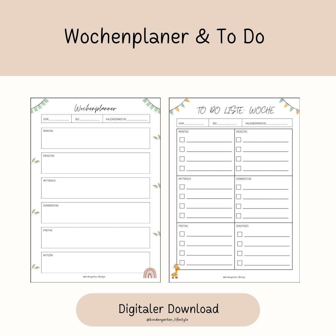 Der Wochenplaner für Erzieher dient der strukturierten Planung der wöchentlichen Aufgaben und Aktivitäten. Er hilft, den Überblick über pädagogische Angebote, wichtige Termine und organisatorische Aufgaben zu behalten.