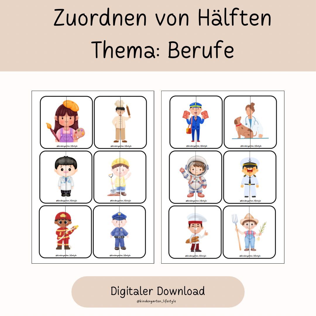Die Kinder haben die Aufgabe, zwei passende Hälften zusammenzusetzen und so die vollständige Figur zu erkennen.